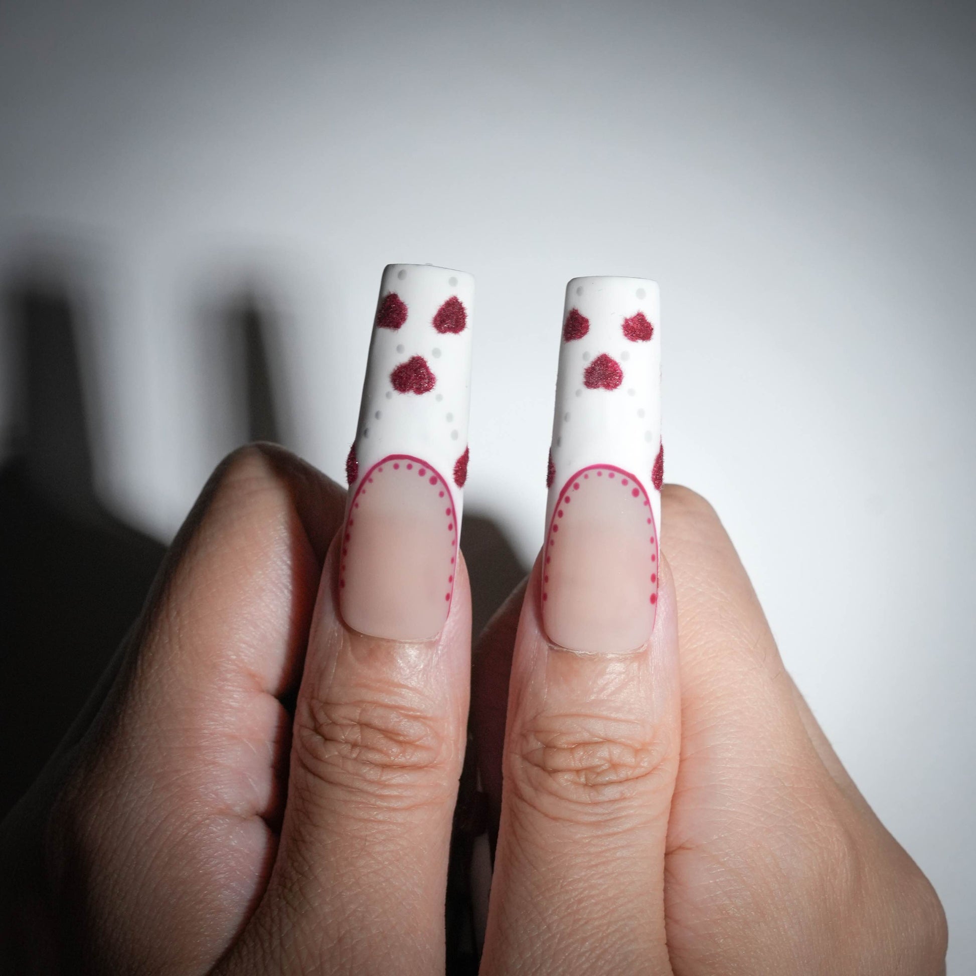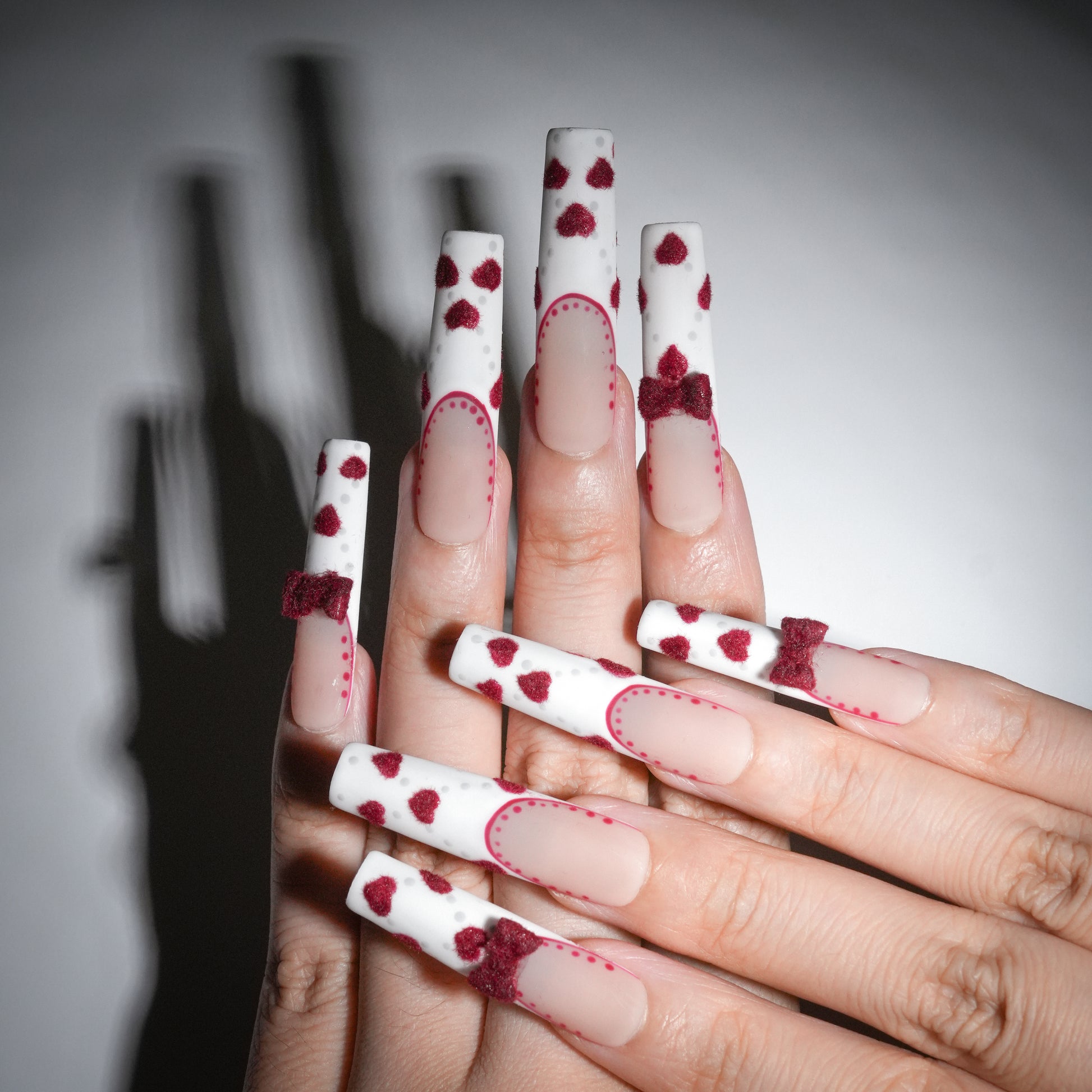 Cherry Cake is the ideal choice for the Christmas season. With its classic red and white color scheme, this design features adorable velvet bows, hand-painted hearts, and delicate lace elements, all contributing to a charming and festive touch to your holiday look.